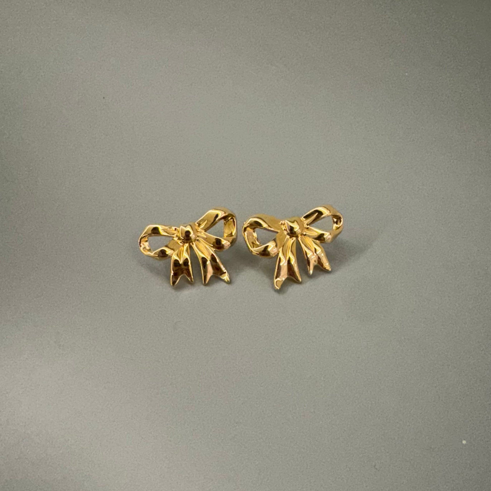 Golden bow-shaped earrings that add a touch of charm to your everyday look — feminine, and effortlessly cute! 🎀