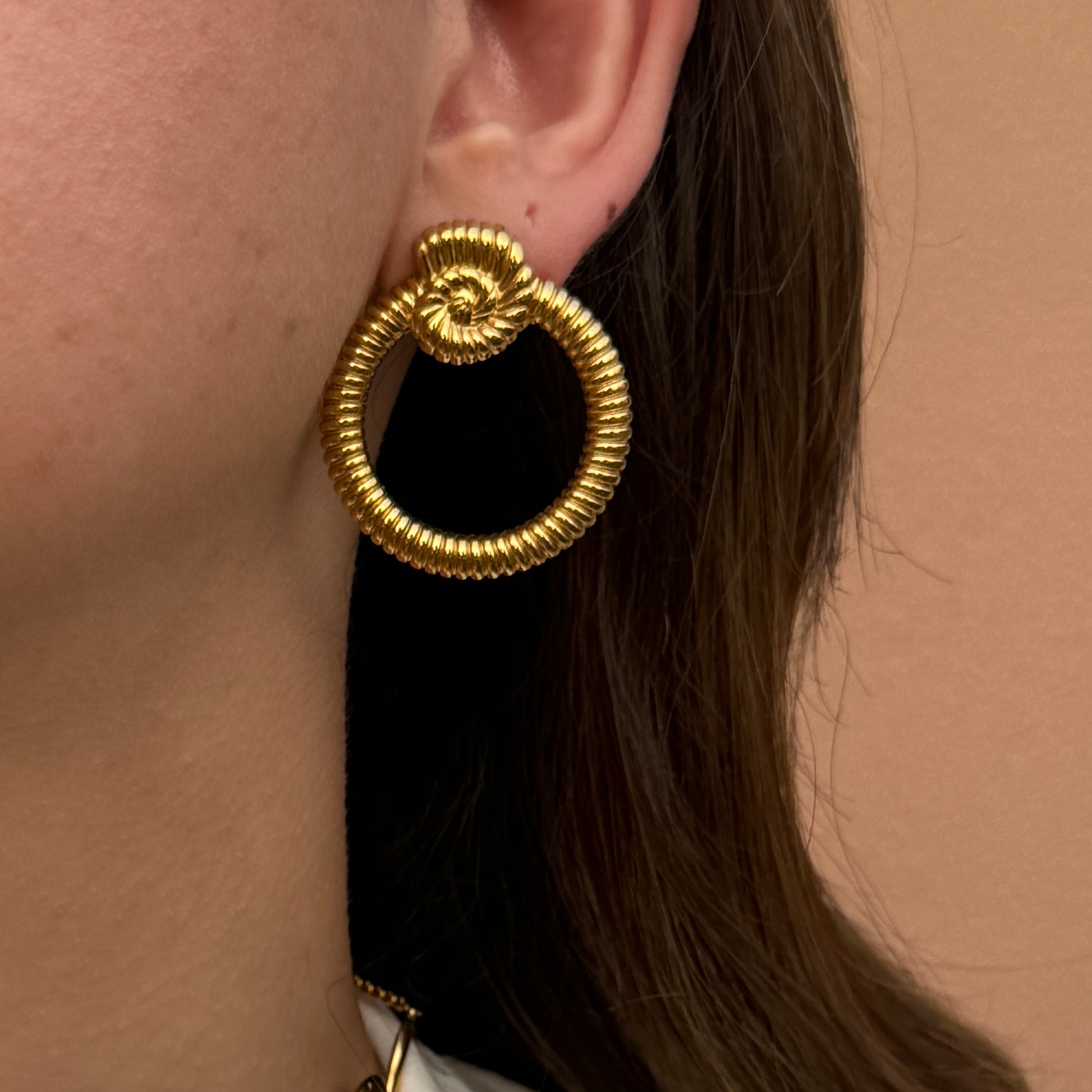 A modern spin on the classic hoop, these circular earrings add a touch of boldness to any look.